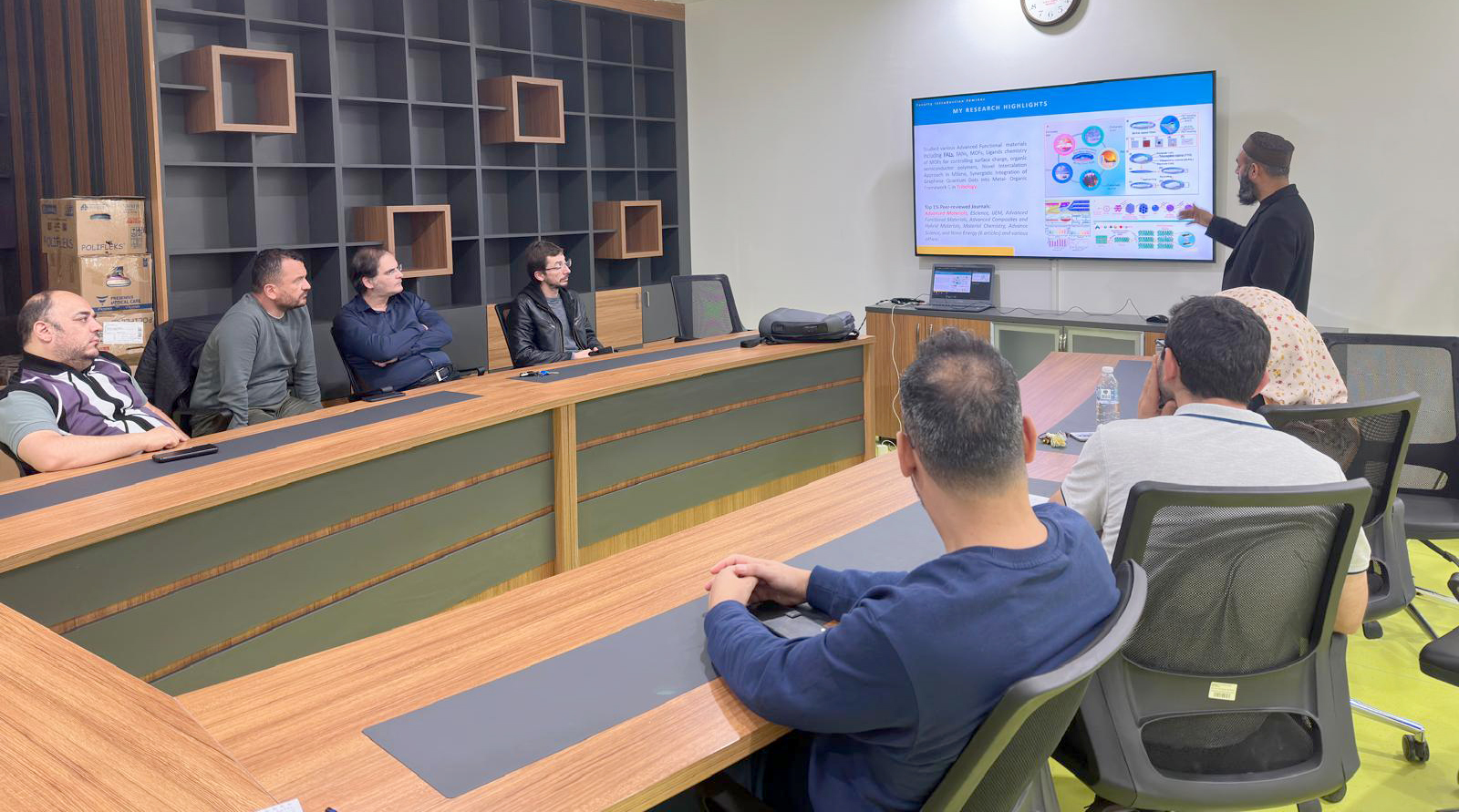 Toplantıda ayrıca, bölüme yeni katılan Dr. Öğr. Üyesi Qazı Muhammad SAQIB çalışma alanları hakkında kapsamlı bir bilgilendirme sunumu yaptı. Dr. SAQIB, araştırma ilgi alanlarını, yürüttüğü projeleri ve gelecekte bölüm bünyesinde gerçekleştirmeyi planladığı akademik çalışmaları öğretim üyeleriyle paylaştı. Katılımcılar, bu sunumun bölümün bilimsel üretkenliğine ve uluslararası iş birliklerine önemli katkılar sağlayacağı yönünde görüş bildirdi.